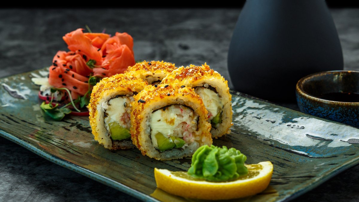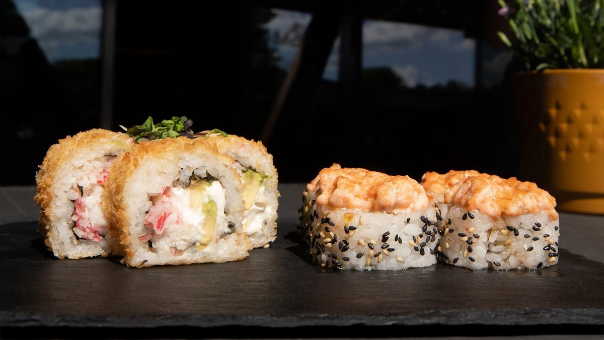 1 x Tempura California (pehme tempura, kurk, toojuust, lumekrabi) 1 x Avokaado hosomaki
