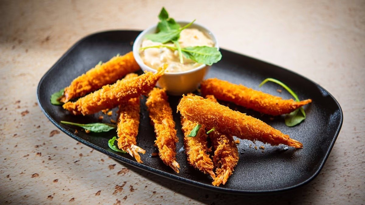 toorjuust, terav kaste, tempura krevett, kurk, masago, seesam