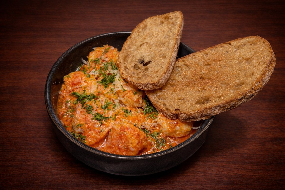Tiigerkrevetid ahjutomatikastmes praetud ciabattaga