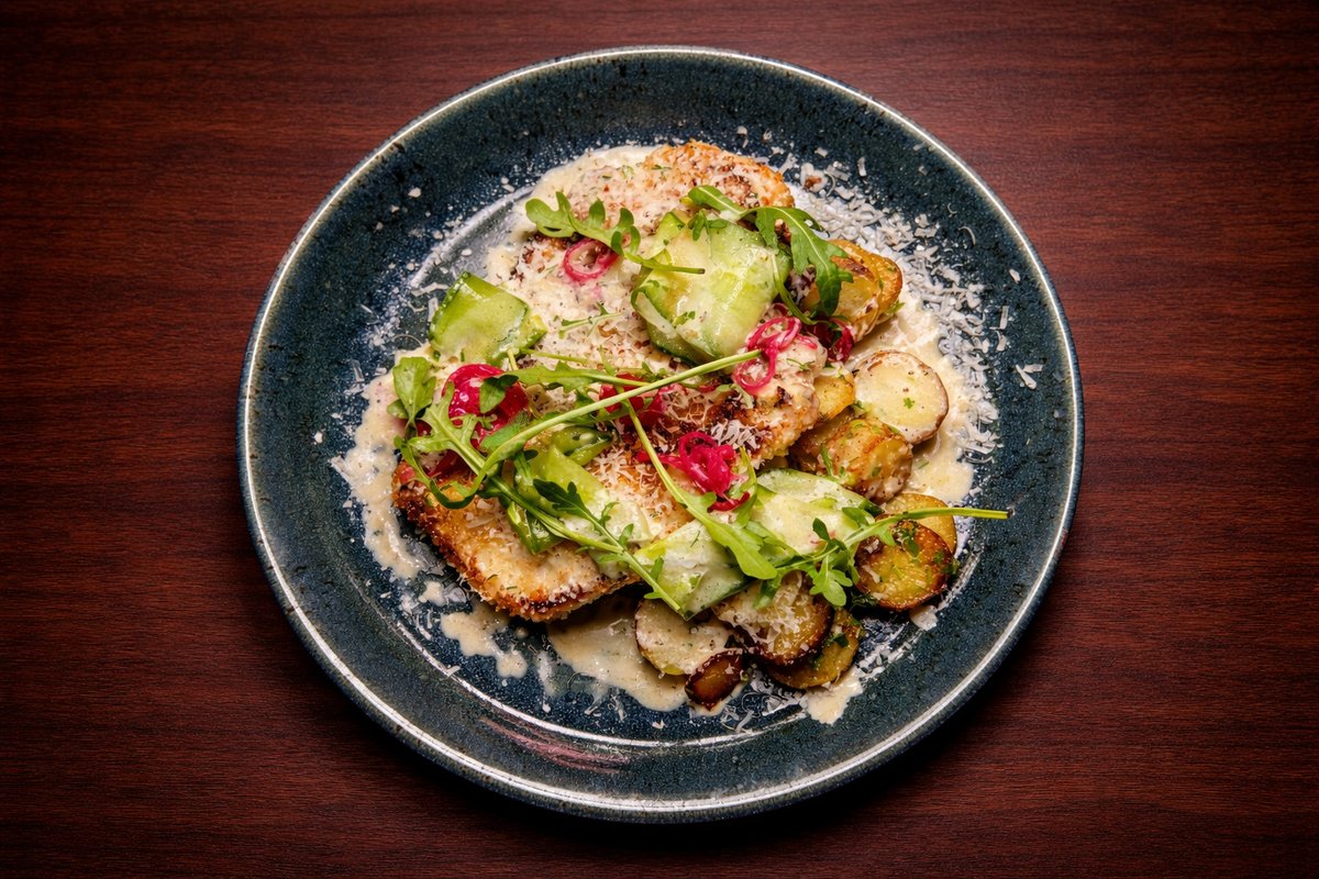 Sealiha šnitsel anšoovise-võikastme ja petersellikartuliga