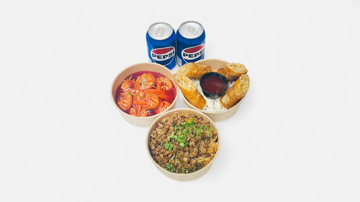 Taimetoidurull + vürtsikas kana-keema nuudlid + kana pelmeenid mees kastmes (10 tk) + 2 Pepsi (330 ml)