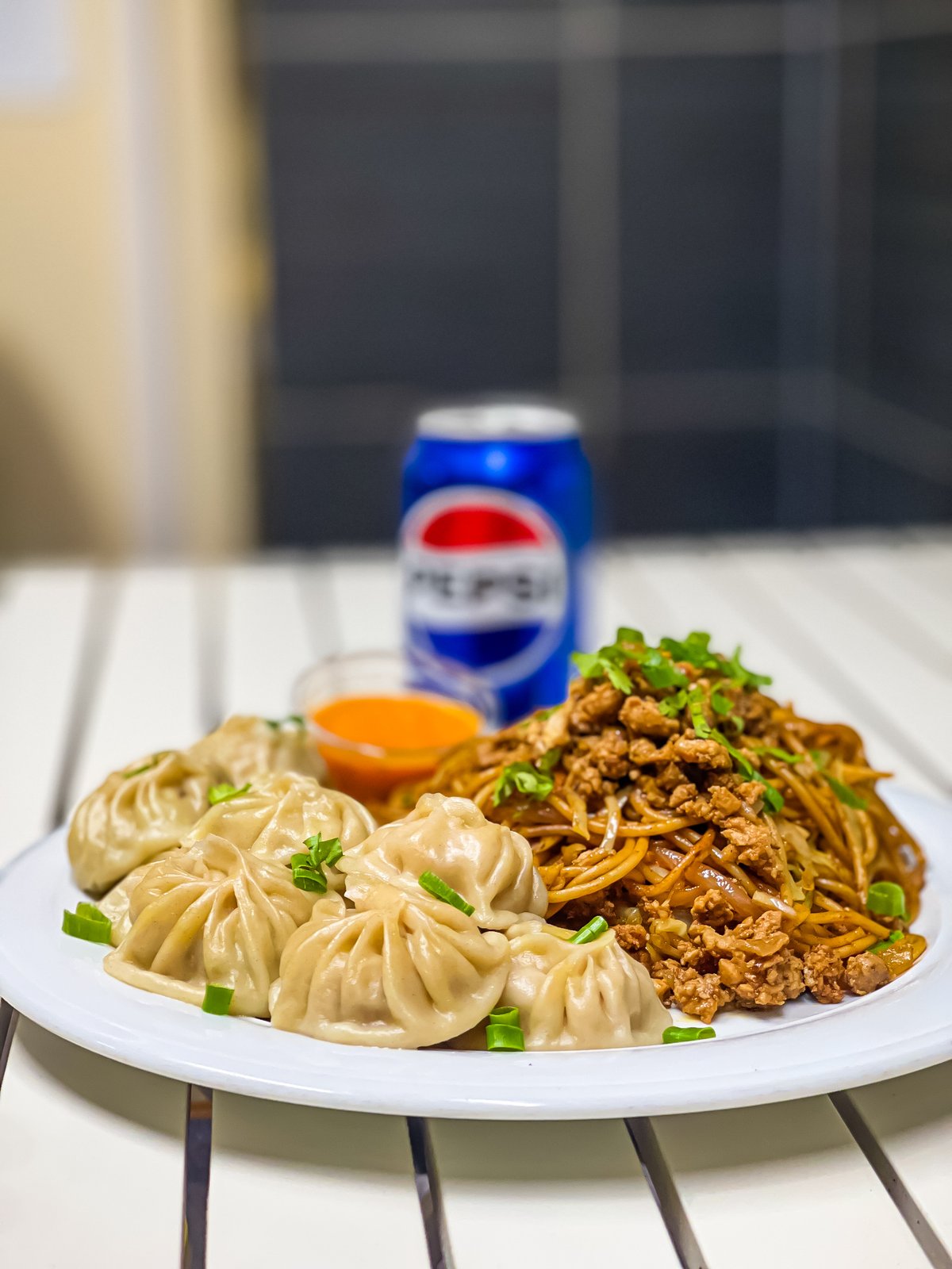 Vürtsikad keema nuudlid +5tk praetud taimne pelmeenid-+330ml pepsi