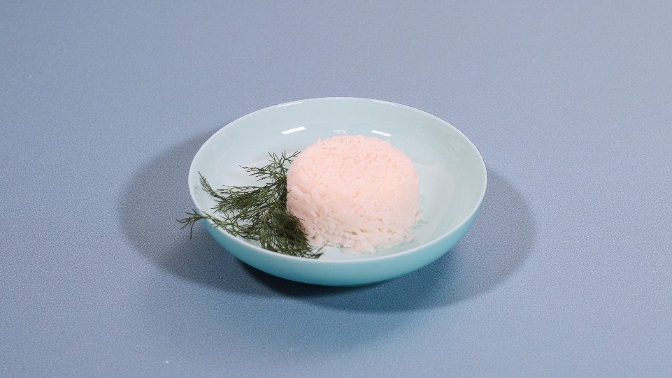 Garneeringuks keedetud riis. Keedetud riis + õli + sool