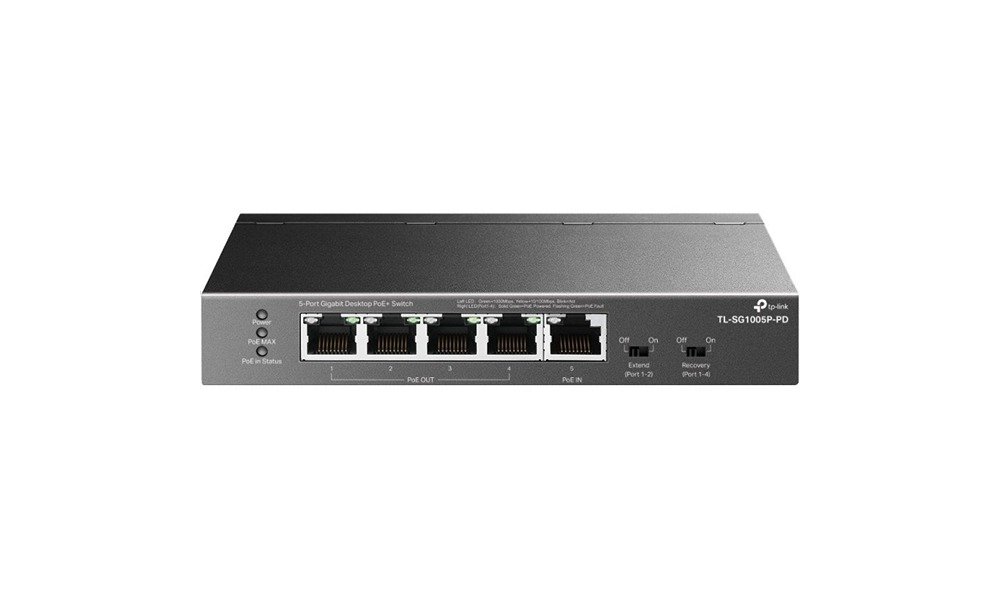 €41.30TP-Link TL-SG1005P-PD V1 - Switch - unmanaged - 4 x 10/100/1000 (PoE+) + 1 x 10/100/1000 (PoE++) - desktop, wall-mountable - PoE++ (66 W)