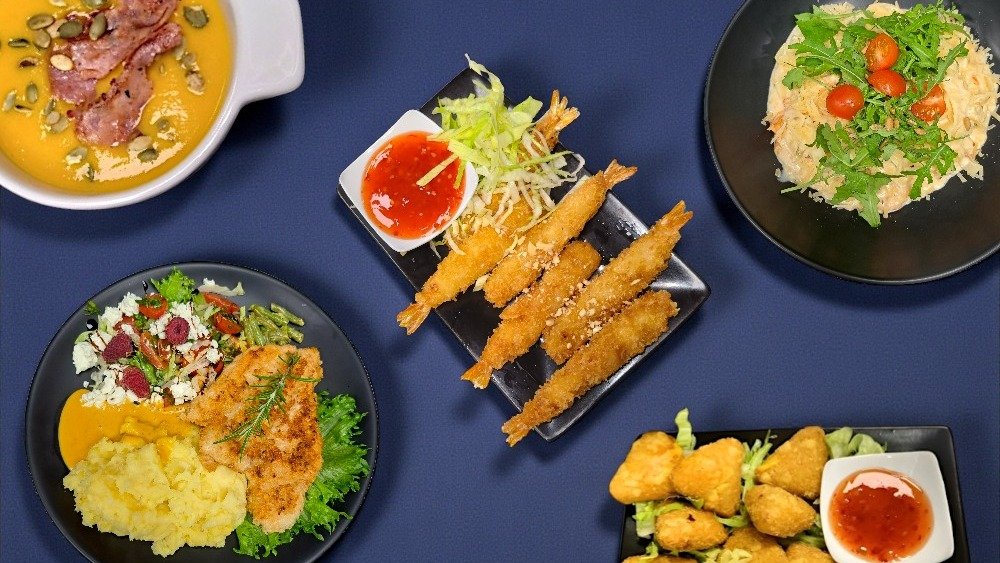 Delicious burgers and tortillas, smoothies, salads and other meals