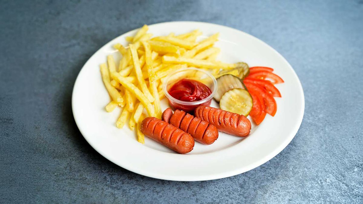 Friikartul, tomat, marineeritud kurk, ketšup, 3x viinerid, kõrrejook