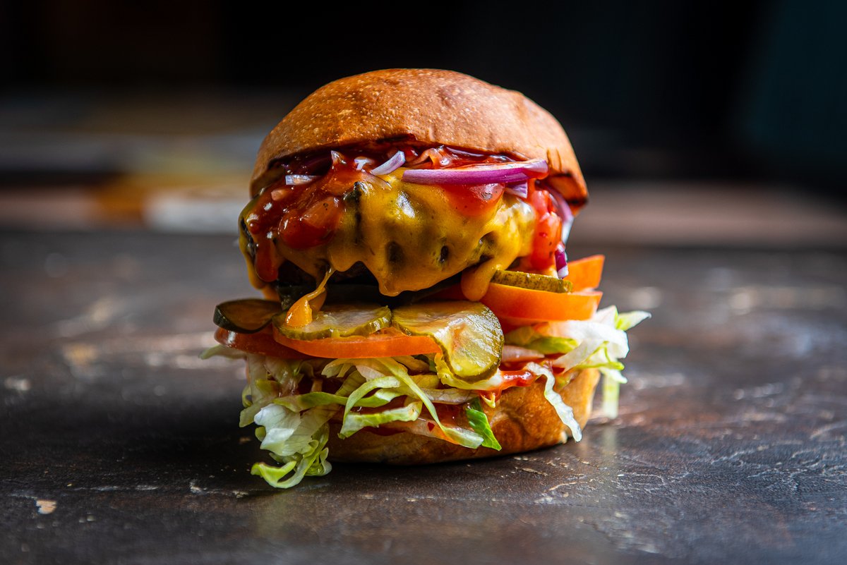 Veiseliha pihv ,jääsalat,tomat,marineeritud kurk,punane sibul,Brioche kukel,salsa kaste,cheddari juust VÜRTSIKAS