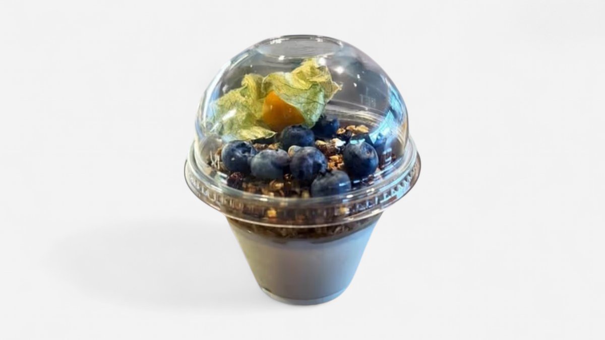 Kreeka jogurt, käsitöö müsli (seemned, rosin), mustikad, füüsal.