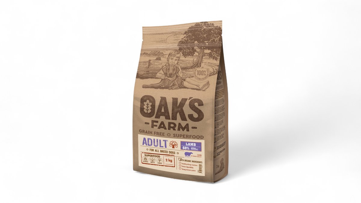 OAK'S FARM Grain Free Lamb Adult All Breed Dogs 2 kg, teraviljavaba kuivtoit kõigile täiskasvanud koeratõugudele, lambalihaga