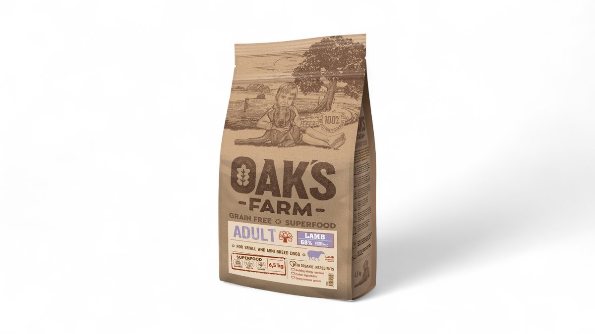 OAK'S FARM Grain Free Lamb Adult Small and Mini Breed Dogs 6,5 kg, teraviljavaba kuivtoit täiskasvanud väikestele ja üliväikestele koeratõugudele, lambalihaga