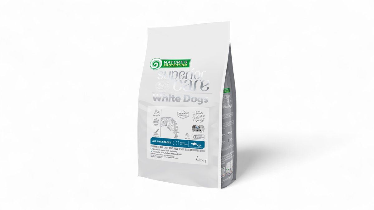 NATURE’S PROTECTION SUPERIOR CARE White Dogs White Fish All Sizes and Life Stages, kuivtoit valge kalaga valgekarvalistele igas suuruses ja vanuses koertele, 4 kg