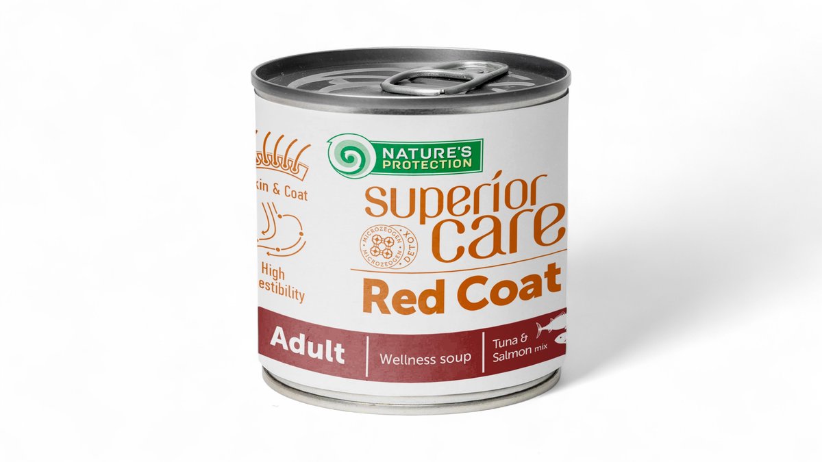 NATURE'S PROTECTION SUPERIOR CARE Red Coat Adult All Breed Dogs with Tuna, tuunikalaga konservsööt-söödalisand igat tõugu täiskasvanud punasekarvalistele koertele, 70 g