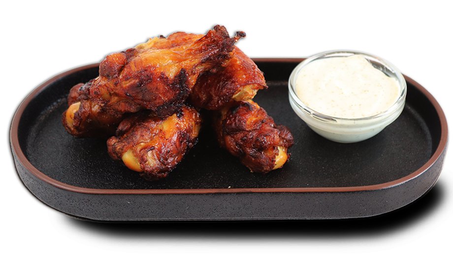 BBQ maustettuja wingsejä ja dippi valintasi mukaan