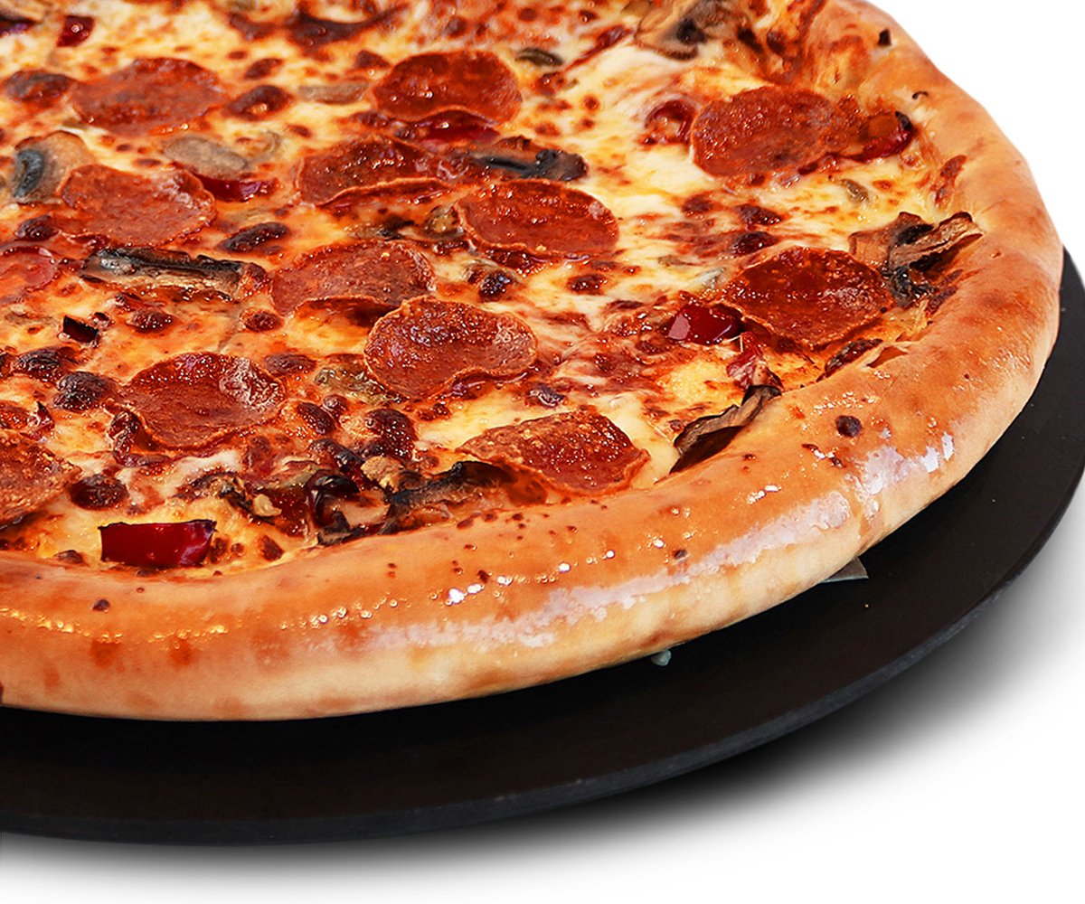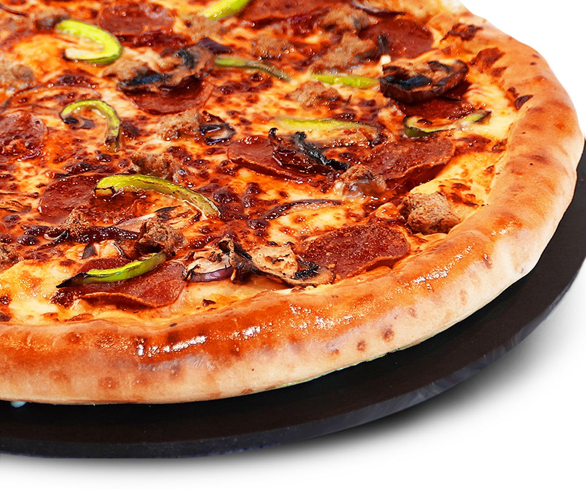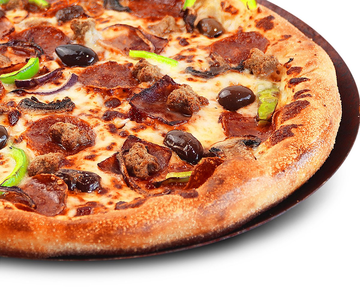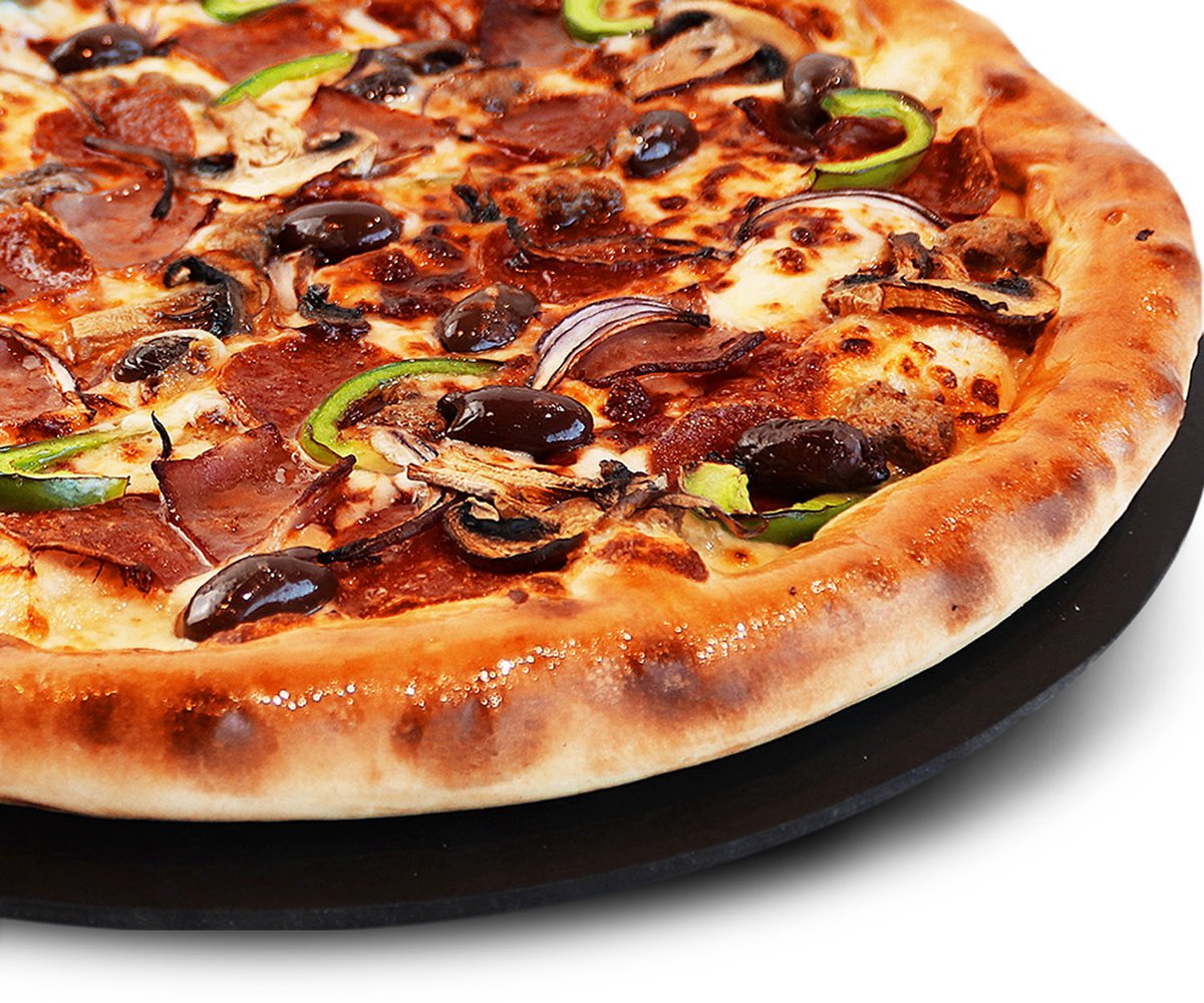 Premium pizza - Naudanlihaa, pepperonia, kinkkua, herkkusieniä, paprikaa, sipulia, oliiveja, tomaattikastiketta ja mozzarellajuustoa