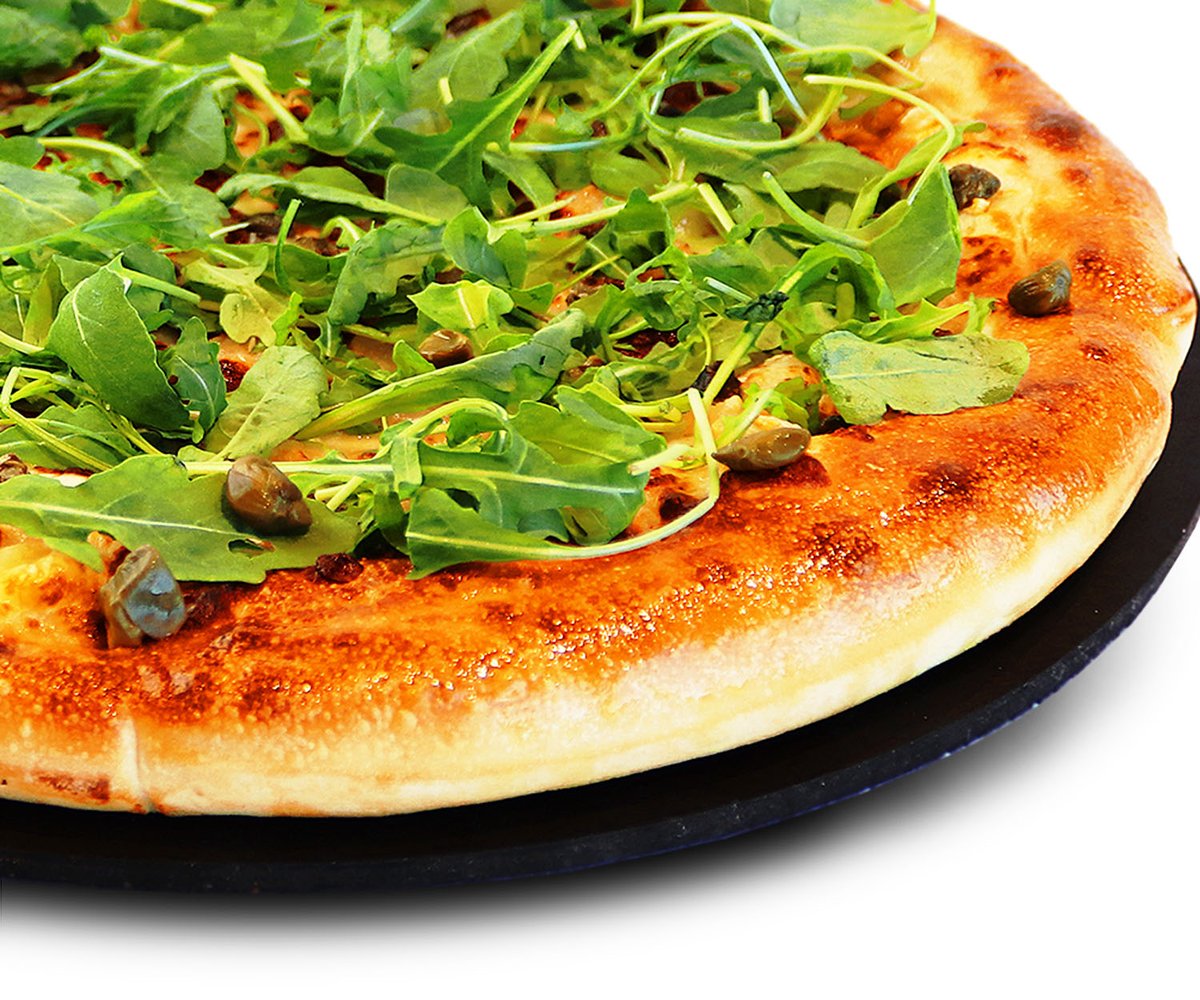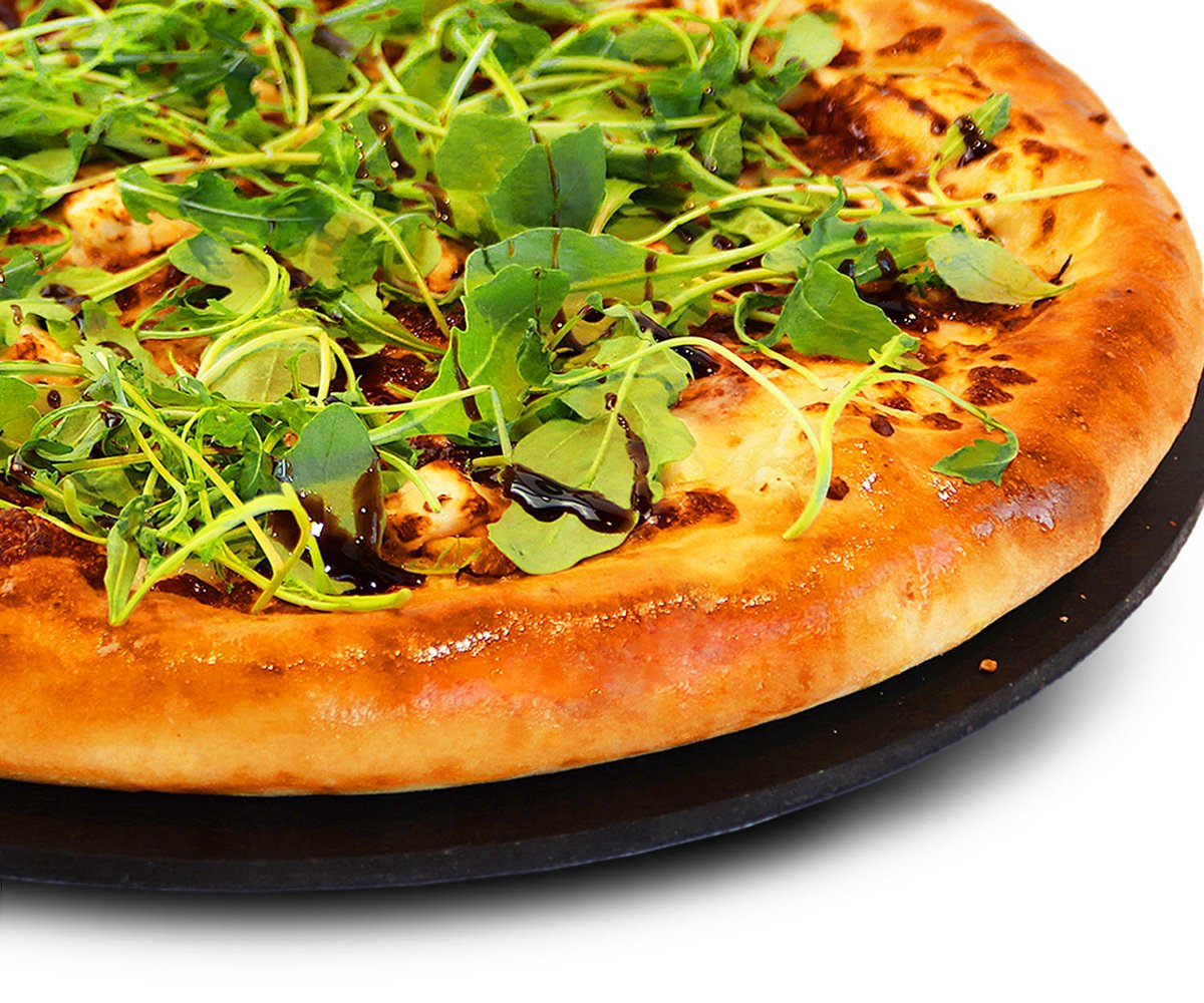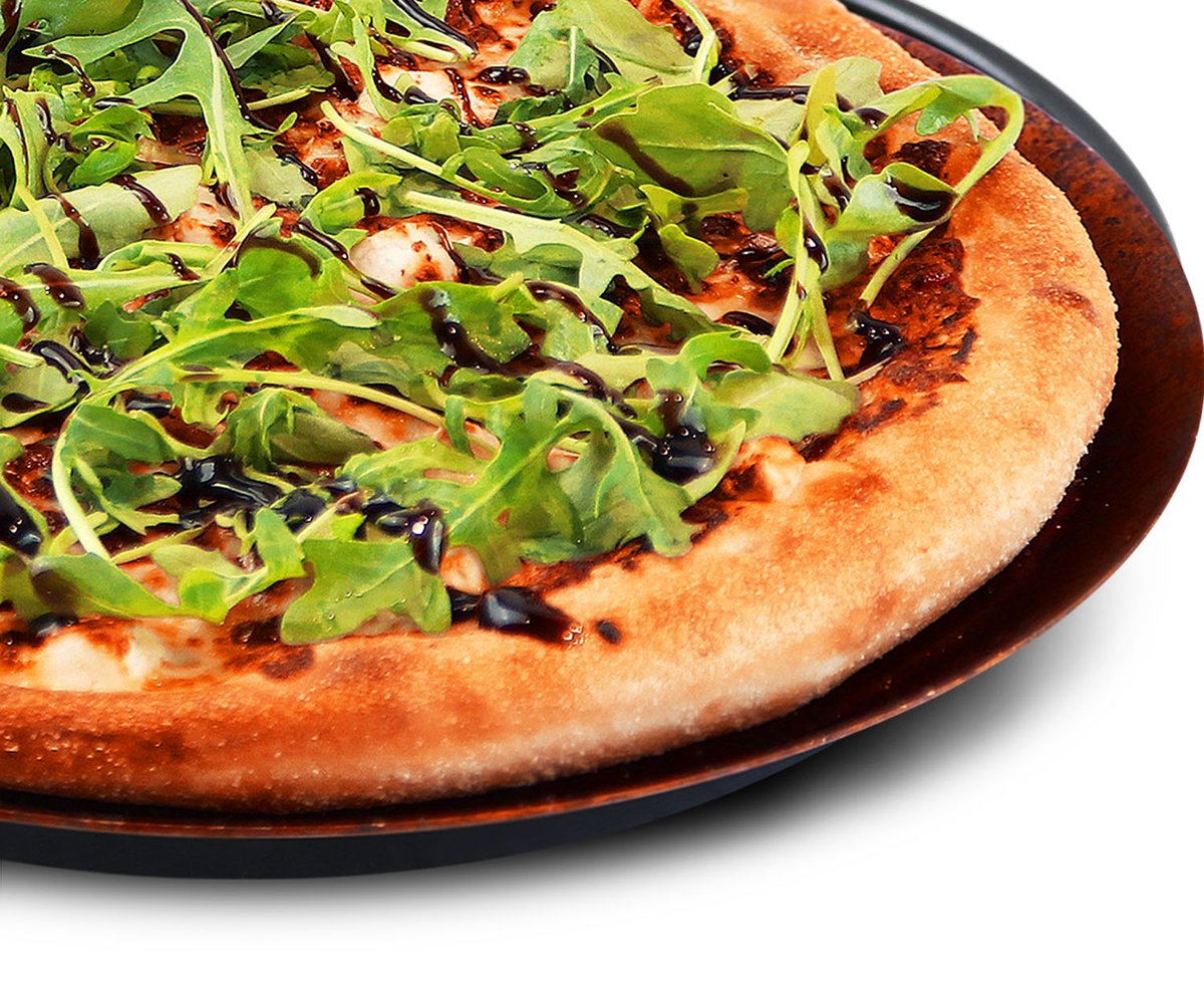 Favorites pizza - Tomaattia, salaattijuustoa, tomaattikastiketta ja mozzarellajuustoa, pizzan päällä rucolaa ja viikunabalsamicoa