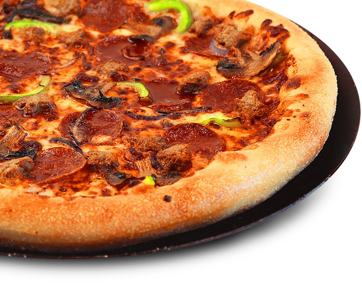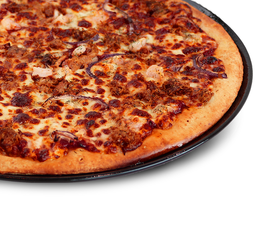 Premium pizza - Naudanlihaa, pekonia, barbequekastiketta, paprikaa, sipulia ja mozzarellajuustoa