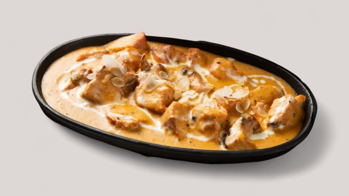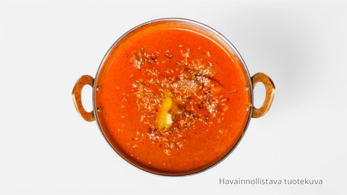 Yrtti-jogurtti marinoituja ja tandooriuunissa grillattuja kanan rintafilepaloja kookos-tomaatti-voi-kermakastikkeessa. Tarjoillaan basmatiriisin ja vastaleivotun naan-leivän kanssa.
