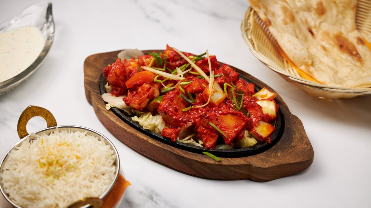 Yrtti-jogurtti marinoituja ja tandoori-uunissa grillattuja lampaan sisäfileepaloja, kanan rintafileepaloja ja jättikatkarapuja, paistettua sipulia, paprikaa ja tomaattia. Tarjoillaan basmatiriisin ja vastaleivotun naan-leivän kanssa.