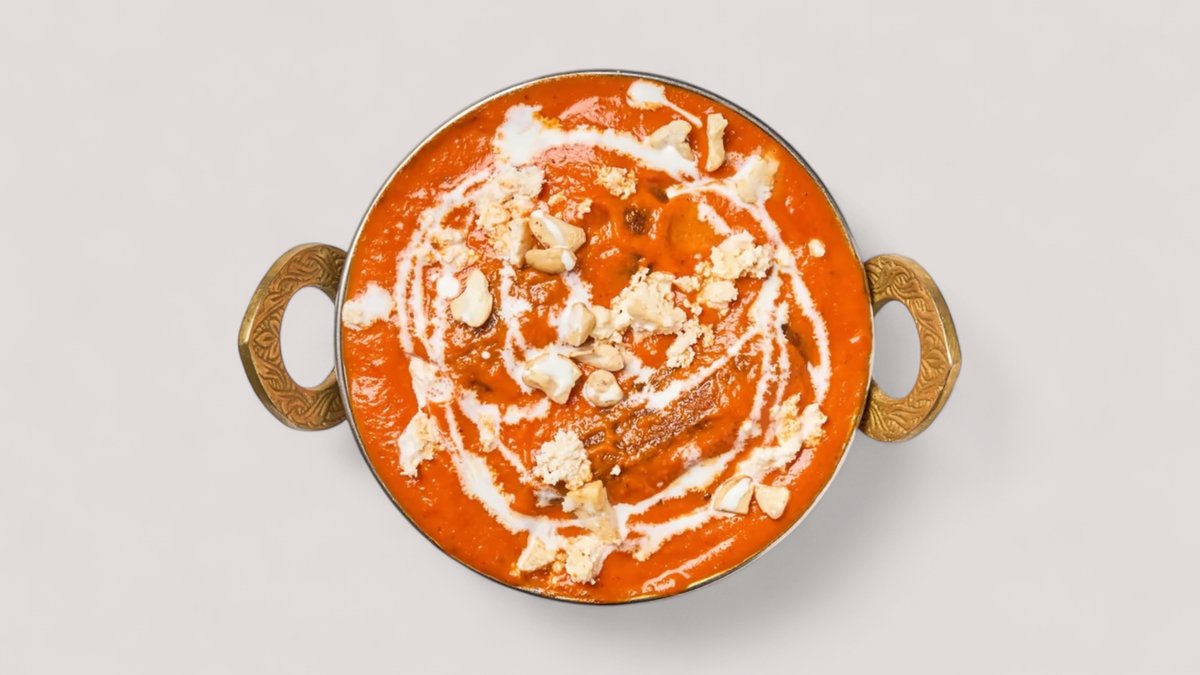 Pehmeästi pannulla paistettuja tofupaloja, kypsennetty täyteläisessä tomaatti-, cashew-ja kookoskermakastikkeessa. Tarjoillaan basmatiriisin ja vastaleivotun naan-leivän kanssa.