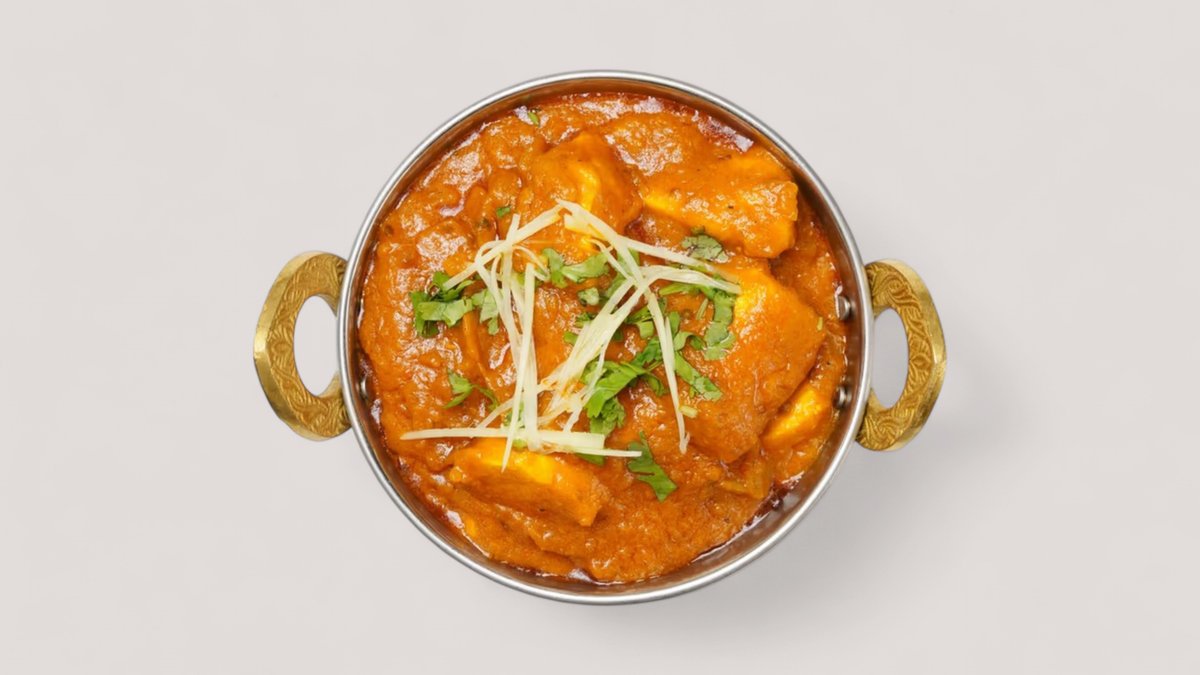 Yrtti-jogurttimarinoituja ja tandoori-uunissa grillattuja tuorejuustopaloja tomatti-sipuli-valkosipuli-inkivääri-chili-masalakastikkeessa. Tarjoillaan basmatiriisin ja vastaleivotun naan-leivän kanssa.