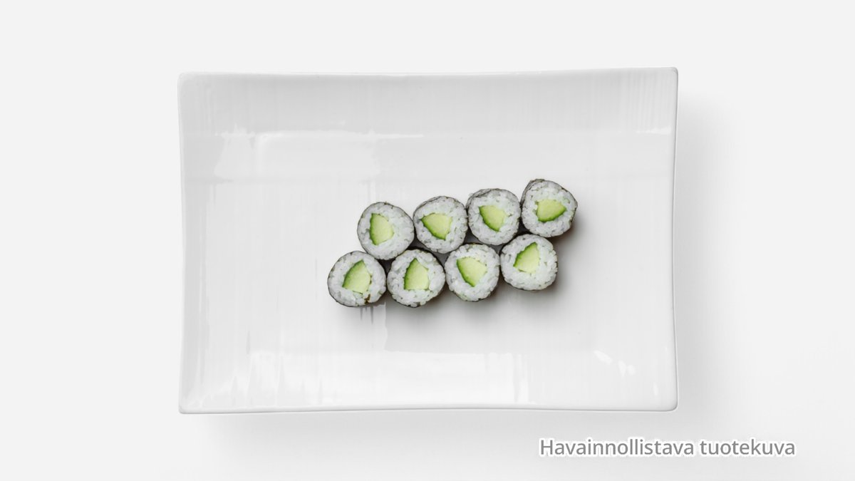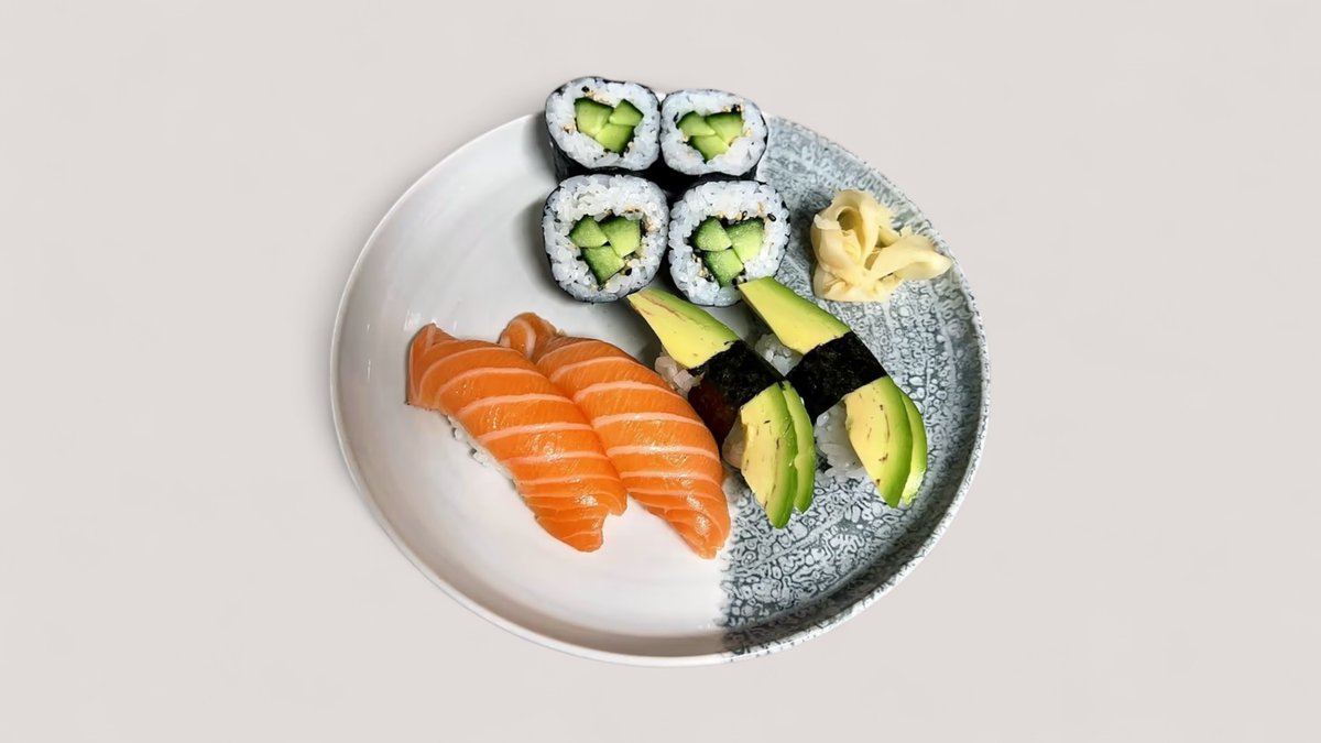 Cucumber maki (4 pcs), avocado nigiri (2 pcs), salmon nigiri (2 pcs)