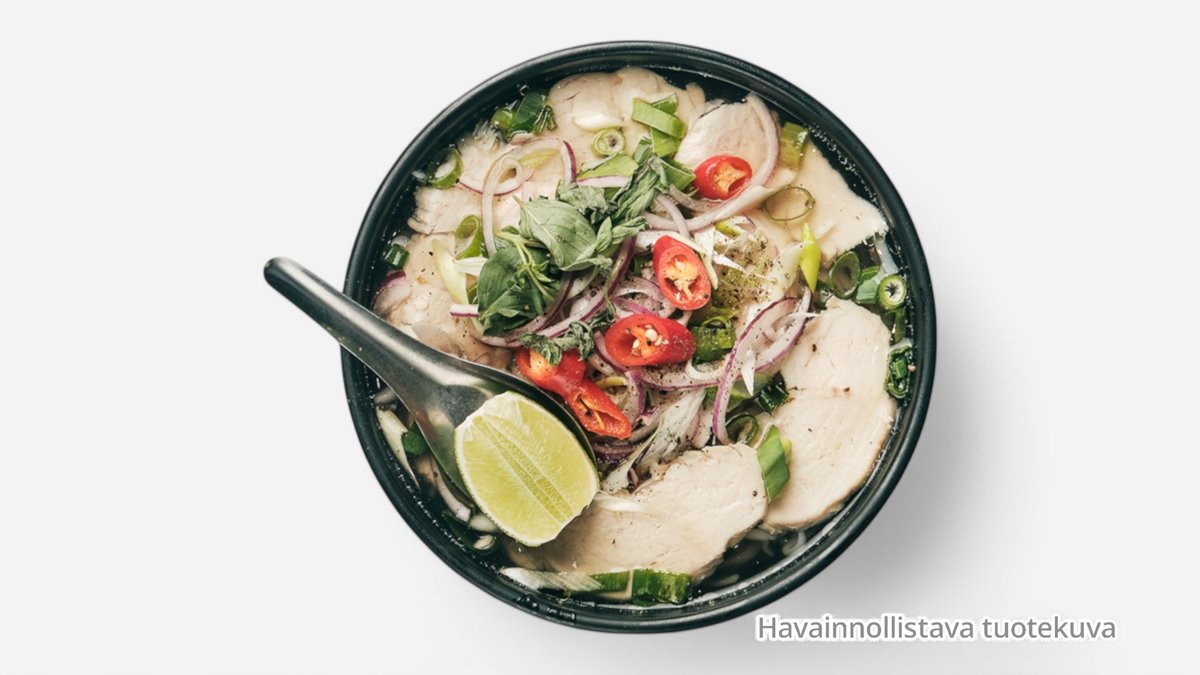 Lounas saatavilla arkisin maanantai-perjantai klo 10:30-15. Pho annokset sisältävät Rainbow salaatin, itse tehtyjä kastikkeita sekä valitsemasi keiton.