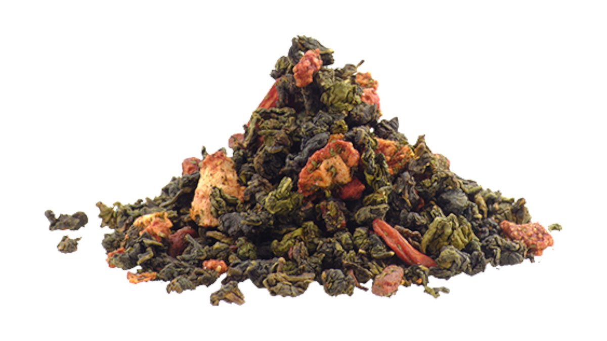 Oolong Tea | dry strawberries and goji berries Default: No sugar.
