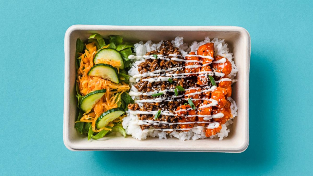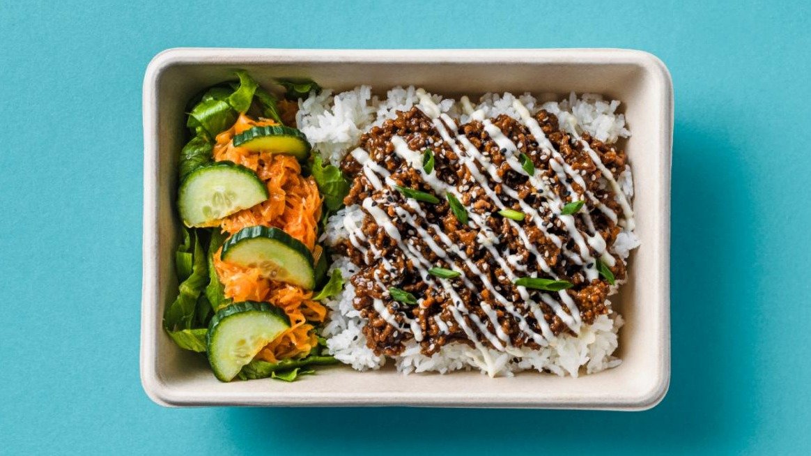 Fried minced beef with bulgogi sauce and aioli, served with salad and rice.