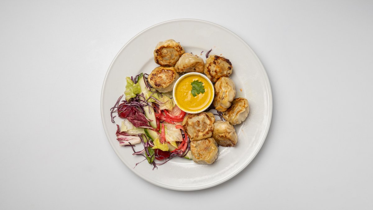 Steamed then pan-fried Nepali momo with juicy fillings and fresh dough. Served with momo dip sauce.
