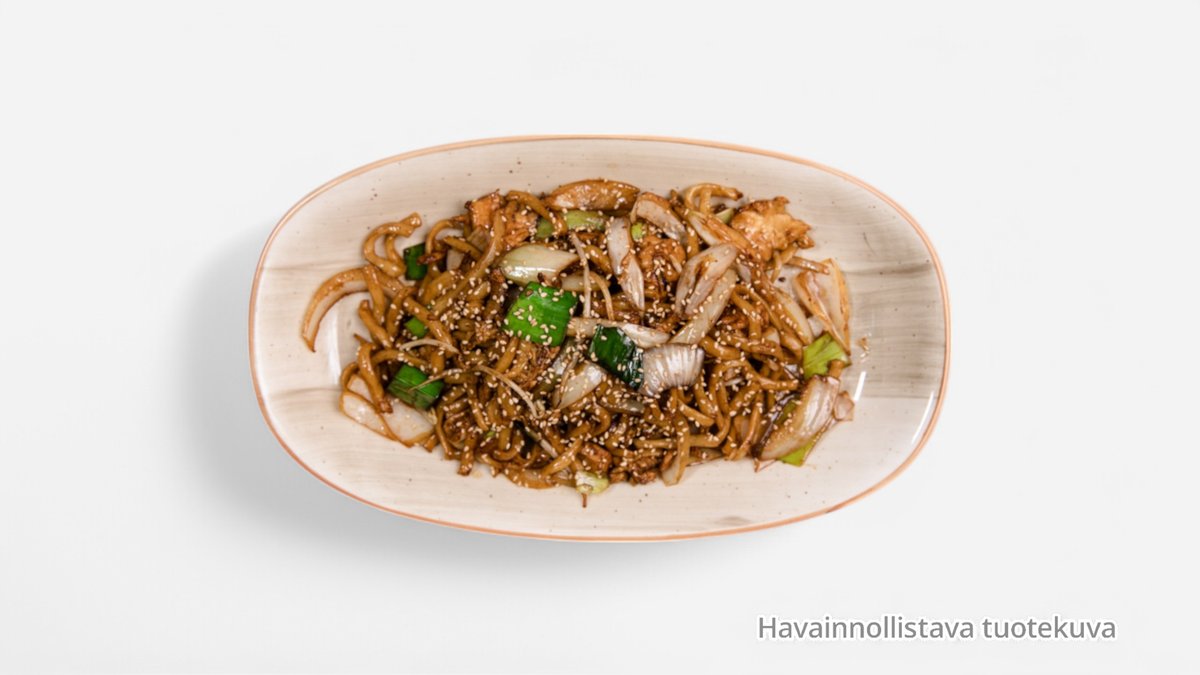 Egg noodles, chicken, mushroom, bamboo, red onion, sweet chili sauce
