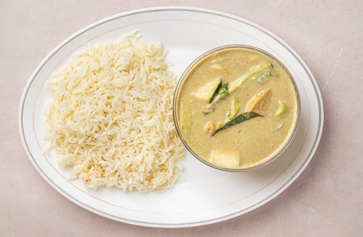 Chicken/ shrimp/ tofu/ paprika, red onion, bamboo, zucchini, coconut milk, lime leaves, lemon grass. Served with rice.