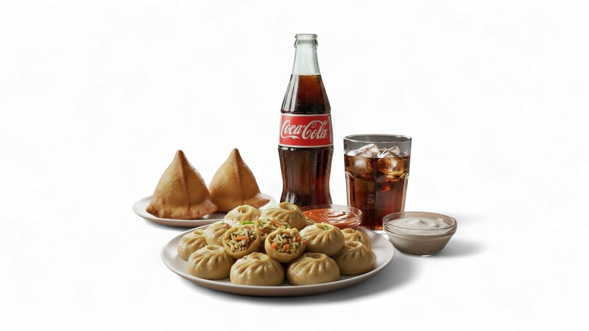 Vegetable Momo with Coca Cola and 2kpl samosa