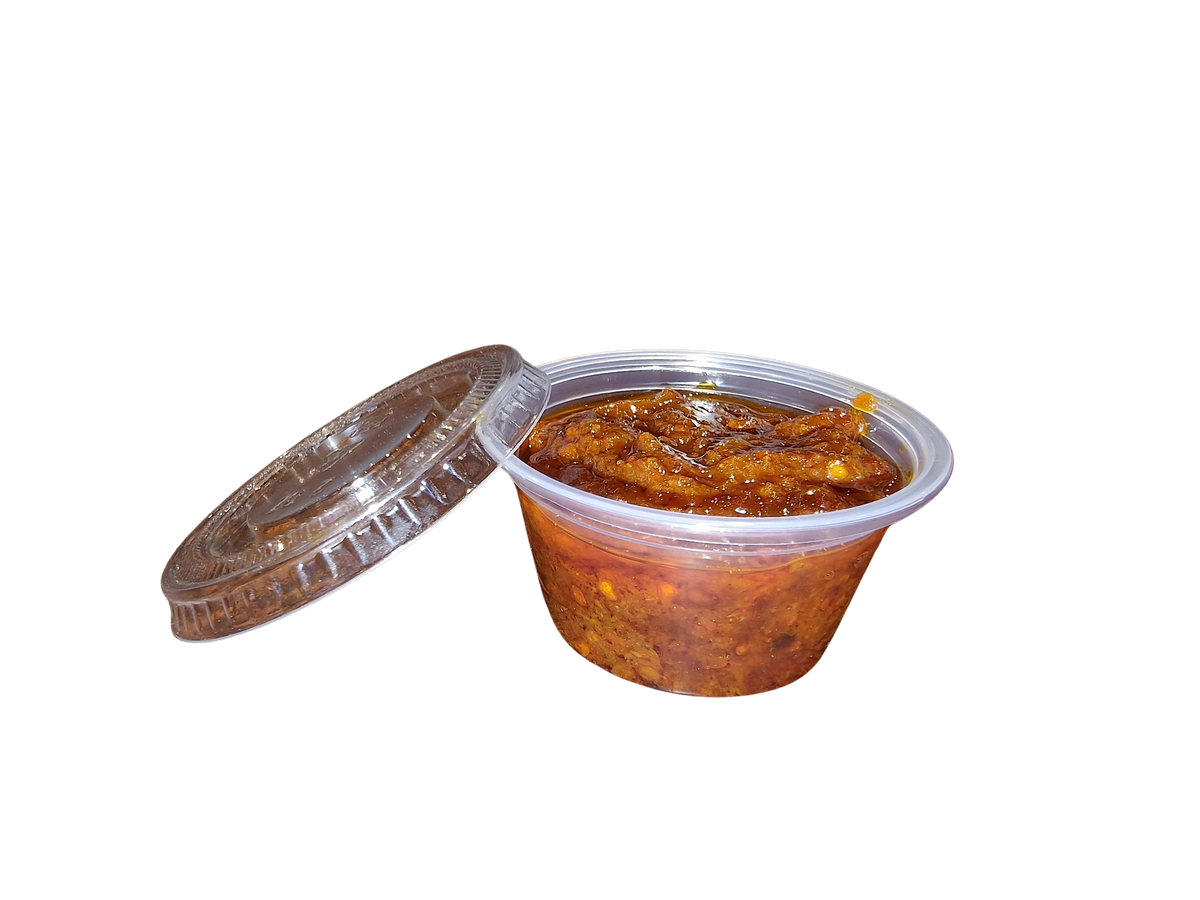 Available vegan. Ruskistettua okraa, perunaa, herkkusientä ja paprikaa keskivahvasti maustetussa tomaatti-sipulivalkosipuli-inkiväärikastikkeessa. Sautéed okra, potatoes, mushroom, and capsicum in medium spicy tomato-onion-garlic-ginger-sauce.