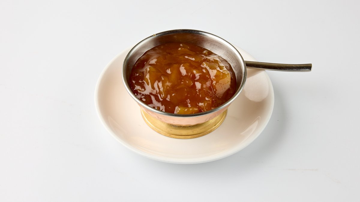 Available vegan. Paistettua pinaattia ja perunaa mausteisessa kastikkeessa. Tarjoillaan tomaattichutneyn kanssa. Fried spinach and potatoes in a spicy base.