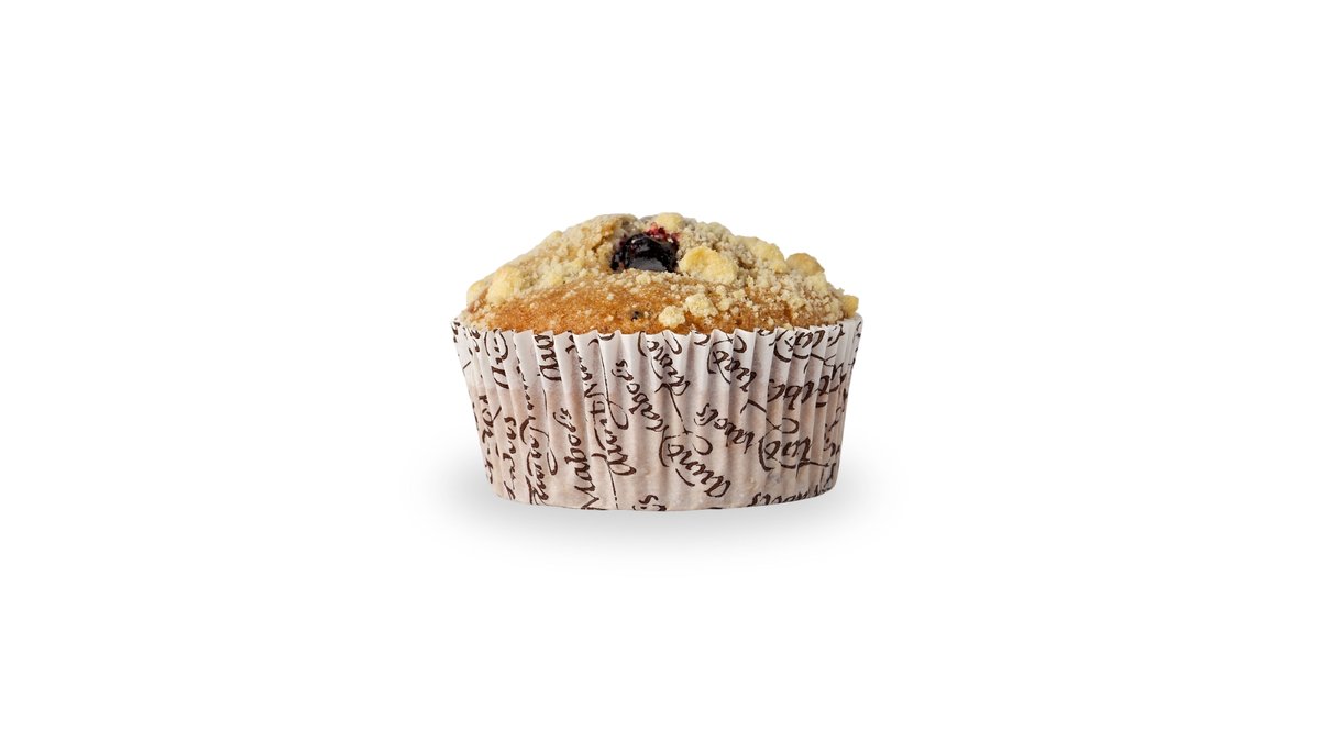 Mehevässä muffinssitaikinassa kokonaisia mustikoita. Sisällä herkullinen mustikkahillo.