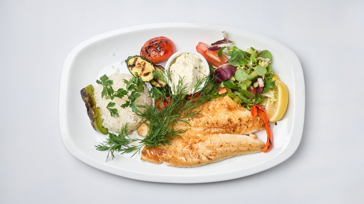 Kalaa, salaattia ja riisiä sekä remouladekastiketta (G, L)