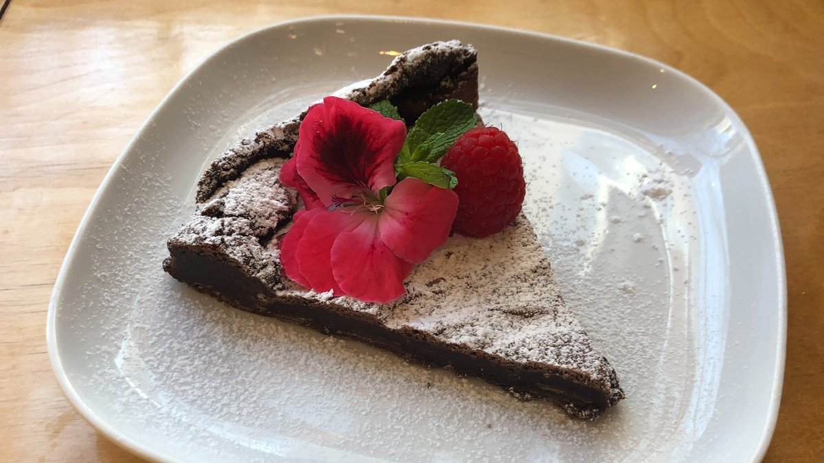 Kahvi/tee, chiavanukas mangokermalla ja tuoreilla marjoilla (Ve,G), tuoremehu, Valitse yksi: Pannari (Ve,G) / Toast: Artisokka & vegaanijuusto / Tomaatti & vegaanijuusto/ Paahdettu munakoiso, pesto rosso & vegaanijuusto
