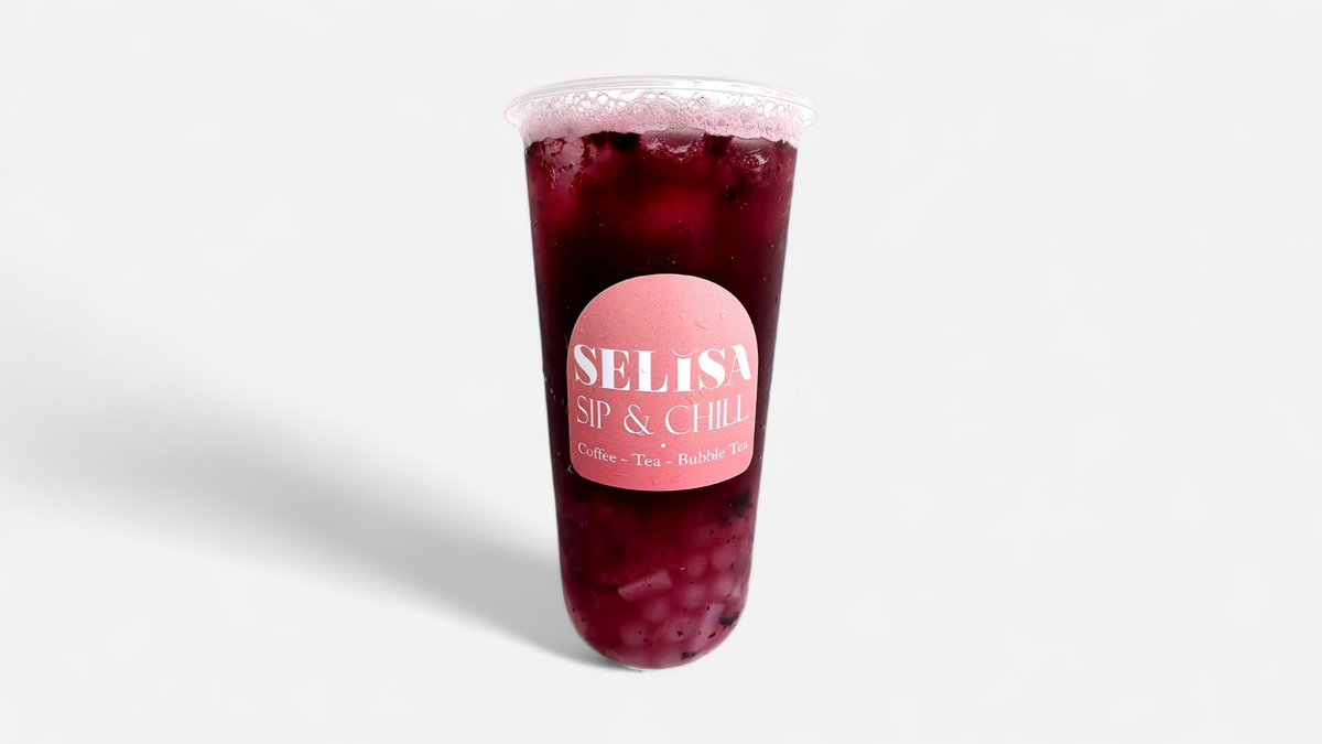 Mustikkaa, teetä, mustikkahyytelöä ja mustikka popping-helmiä
