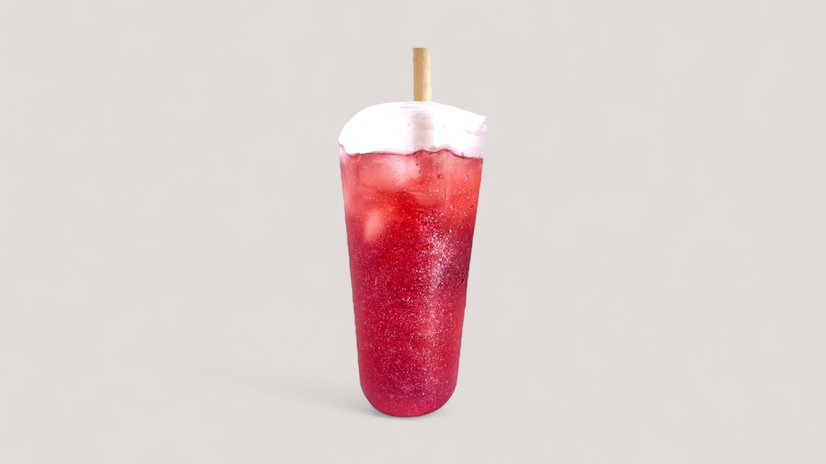 Soda, passion fruit syrup, strawberry syrup, lemon