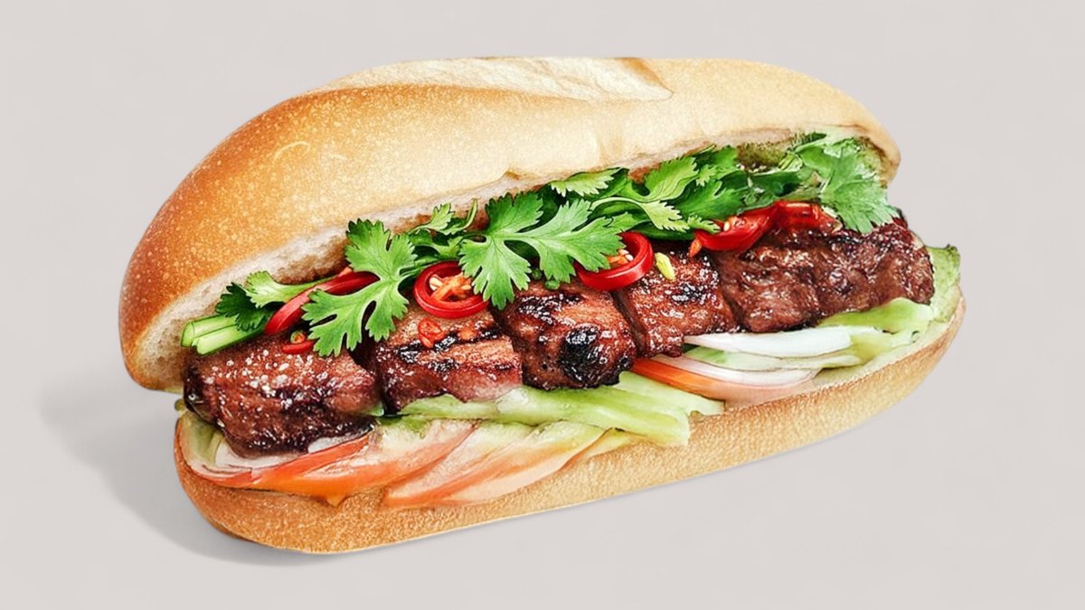 Banh Mi (20cm) with Protein: BBQ Pork, Grill Pork Sausage, or BBQ Chicken Vegetable: Pickled daikon and carrot Sauce: mayonnaise, soya and chilli.