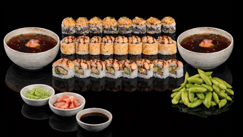 4kpl Milano Maki 4kpl Malta Maki 1kpl Musubi Tofu Nigiri 1kpl Avocado Nigiri 1kpl Inari Nigiri