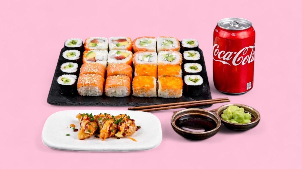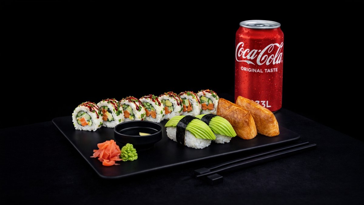 8kpl Malaga maki 2kpl Inari Tofu nigiri 2kpl Avokado nigiri 1kpl Juoma