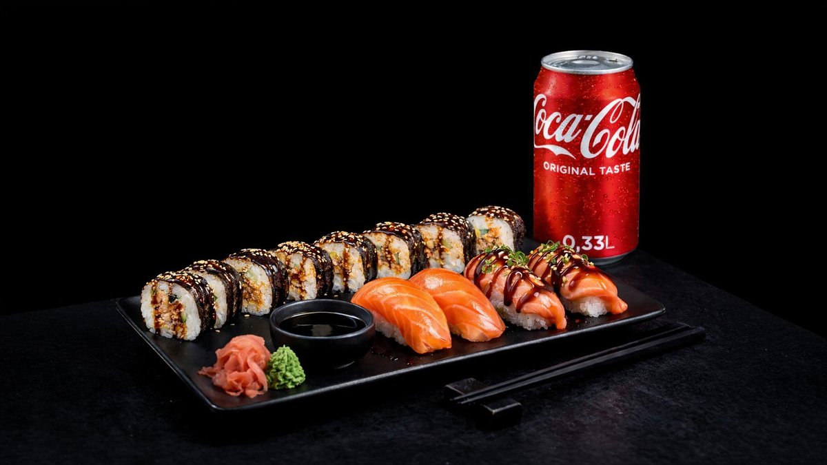 8kpl Riga maki 2kpl Halstrattu lohi nigiri 2kpl Shake nigiri 1kpl Juoma