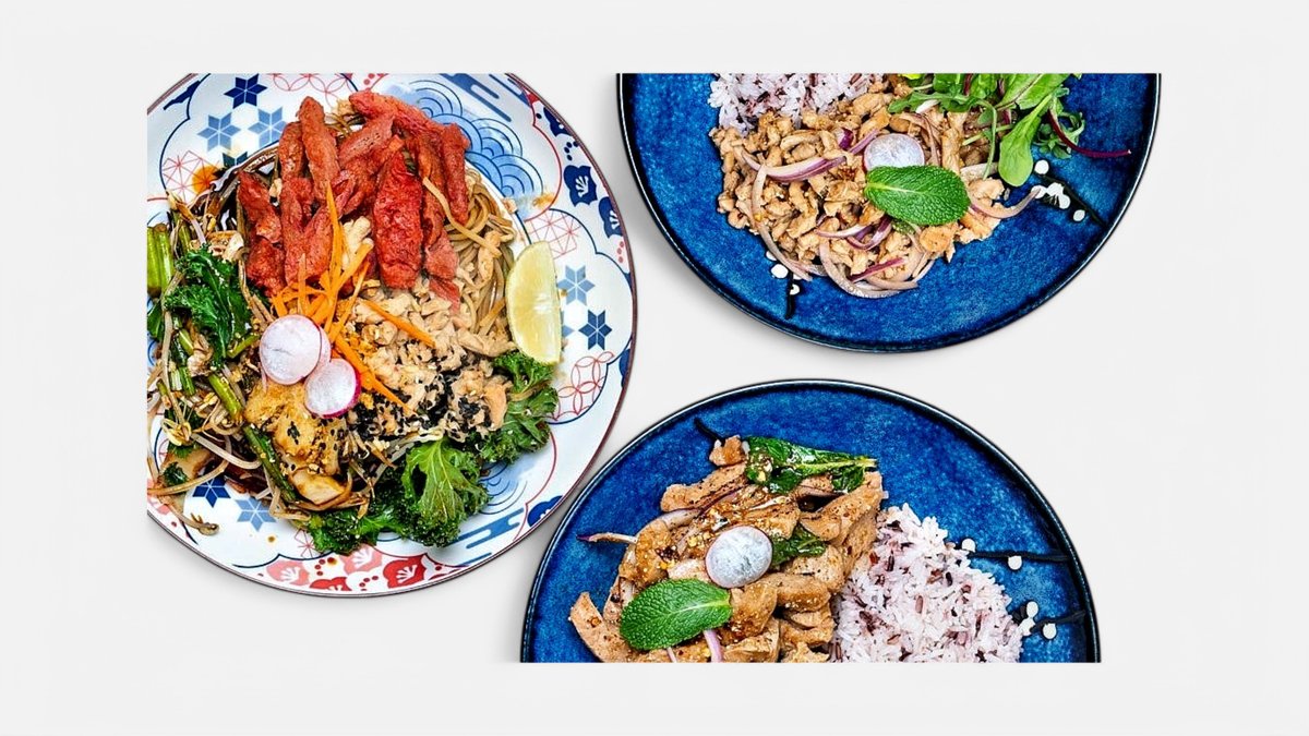 Northern Thai-style noodle curry soup with mixed protein, onion, coriander, lime. Allergens: soy, pea, chickpea