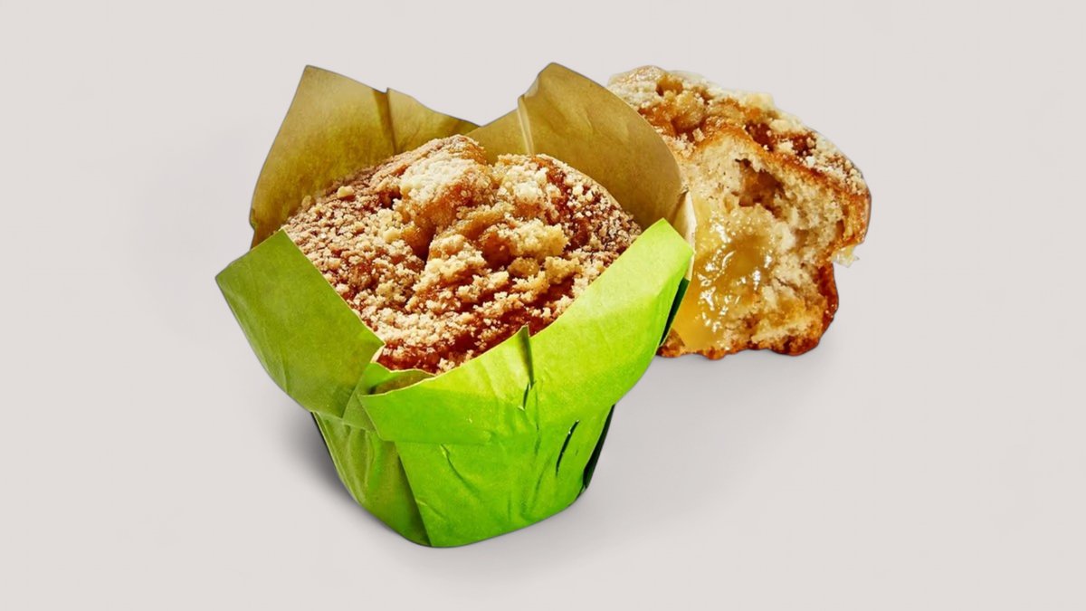 New blueberries filled muffin with 25% natural blueberry jam filling.