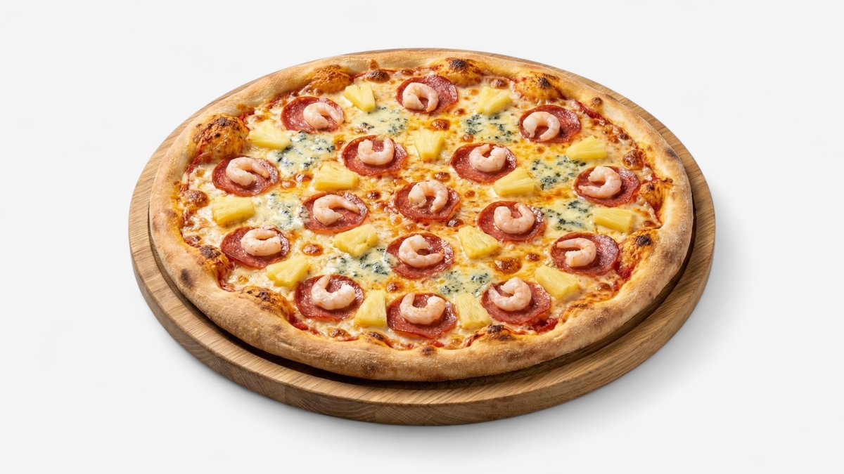Pepperonisalamia, ananasta, katkarapuja (MSC) ja aurajuustoa