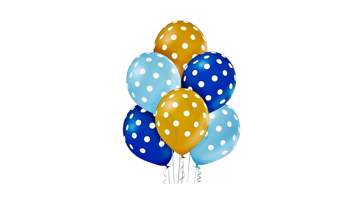 Polkadots ilmapallo 30 cm sinisen ja kullansävyt 6 kpl/pkt ( 5000327)