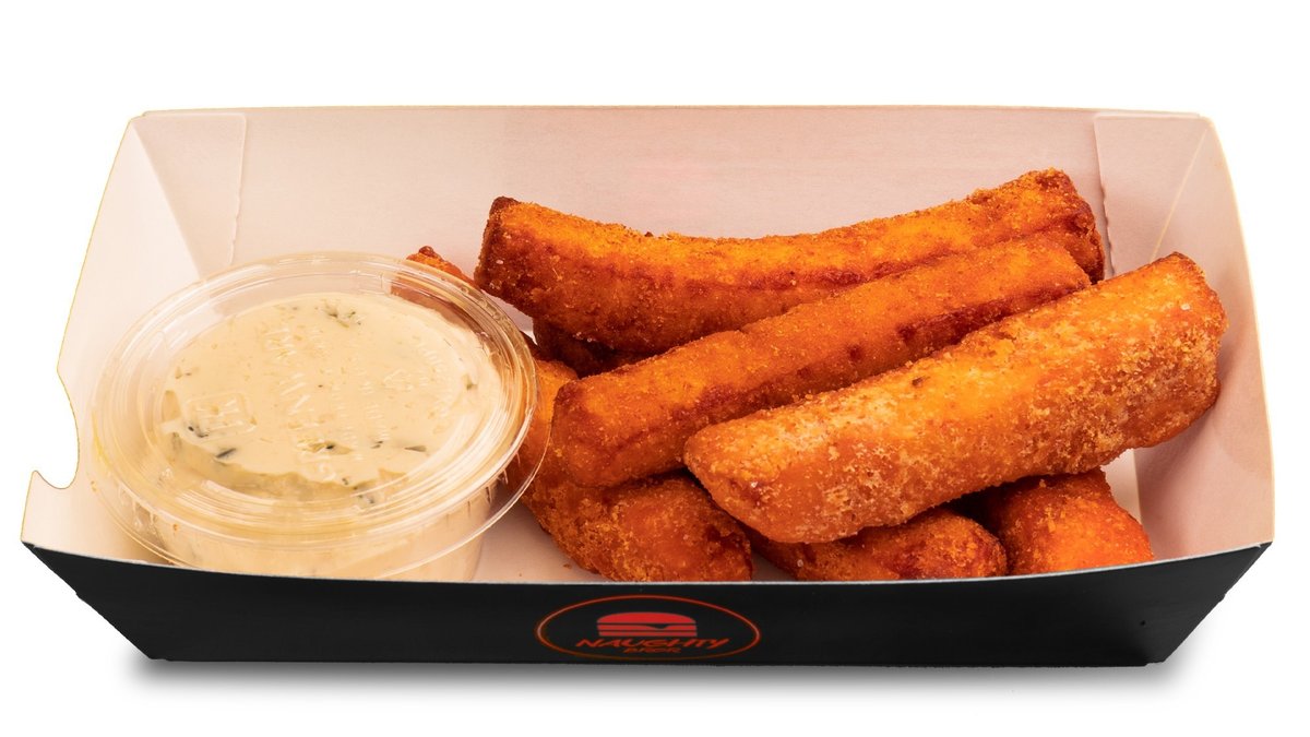 Rapeita halloumiranskalaisia ja parmesaani-rosmariiniaiolia. Crispy halloumi fries served with parmesan rosemary aioli.