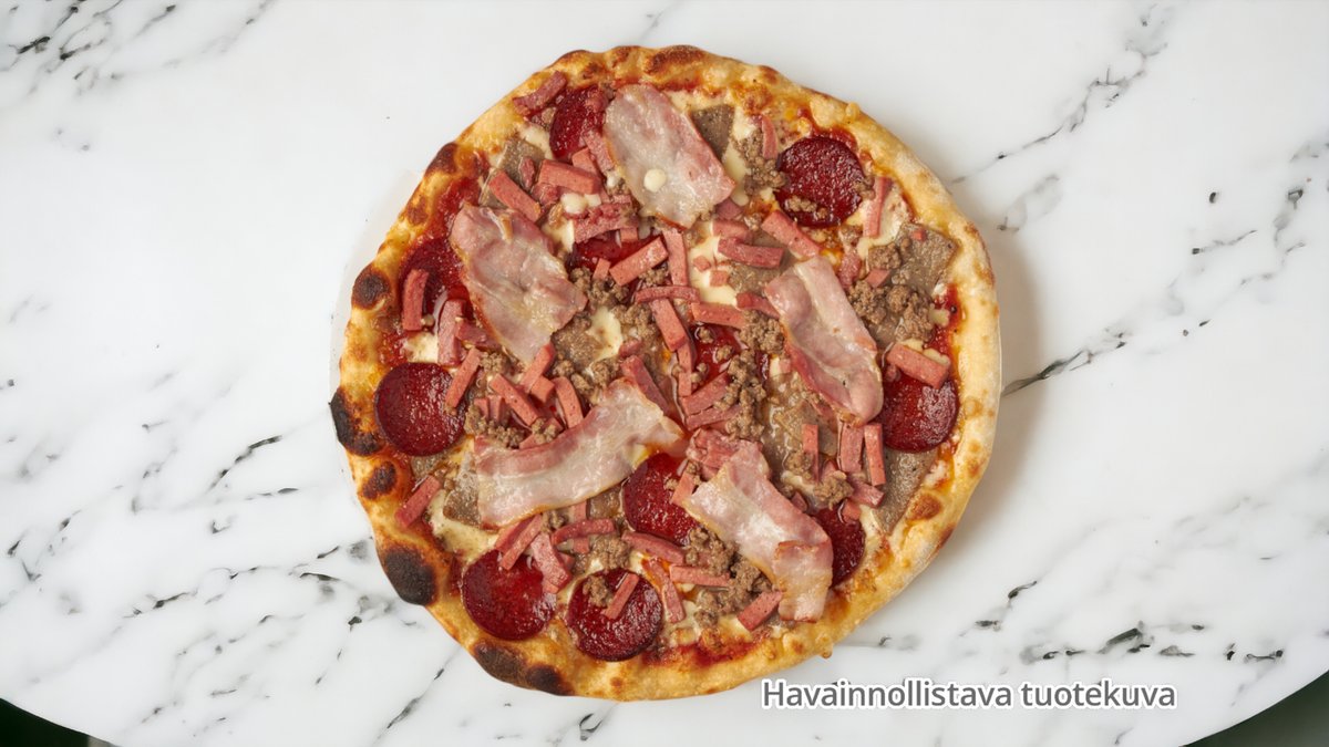 Kebabliha, pekoni, kinkku, salami, jauheliha, pepperoni, talon majoneesi