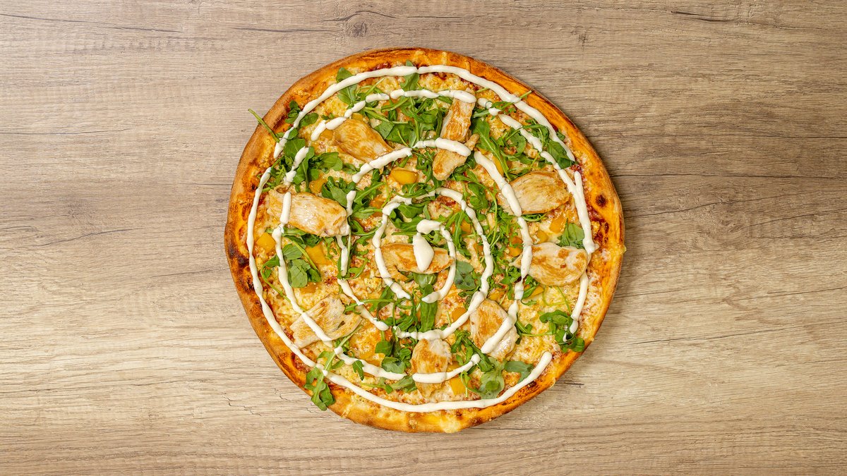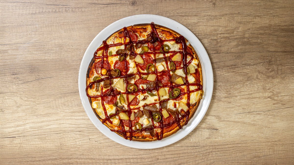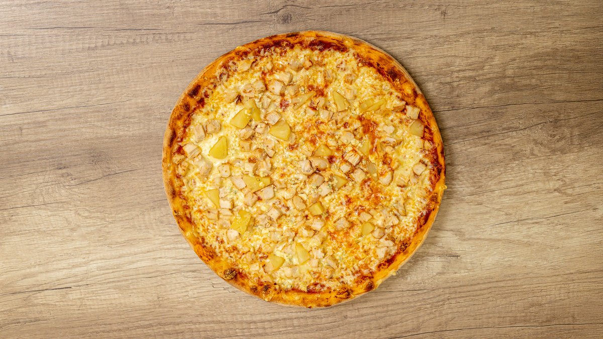 Ananas, jalapeno, pepperoni, hotpete-kastike (pohjaan), kanakuutioita